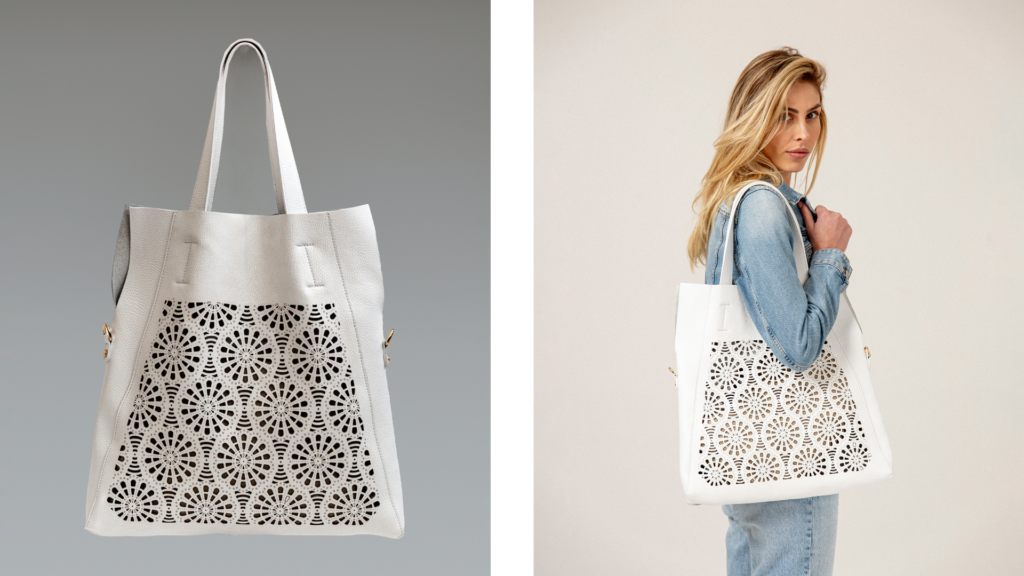 La nuova maxi shopping in pelle traforata; scopri tutti i colori disponibili