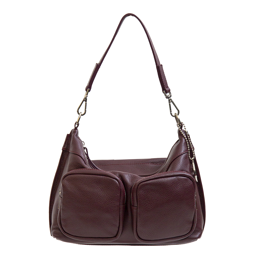 Borsa sportiva e perfetta per tutti i giorni. Sacca in pelle dollaro di grandi dimensioni. Chiusura a zip, tracolla e manico applicabile. Tascone sul retro e doppia tasca sul davanti. Interno foderato. Accessori colore argento.