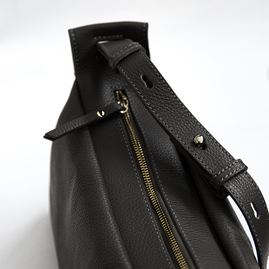 Borsa sportiva e perfetta per tutti i giorni. Borsa a spalla in pelle dollaro di medie dimensioni. Chiusura a zip, tracolla regolabile. Interno foderato. Accessori colore oro.